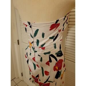Vintage Lucy Love Strapless Abstract Print Sweetheart Mini Dress White Womens XXS