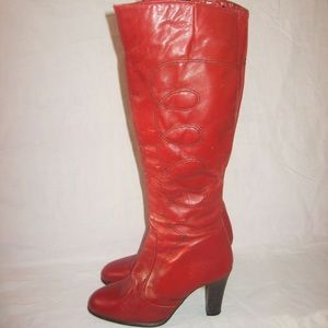 Vintage Lujano Made In Spain Burnt Orange Black Stitching Detail Side Zipper High Heel Knee High Leather Boots