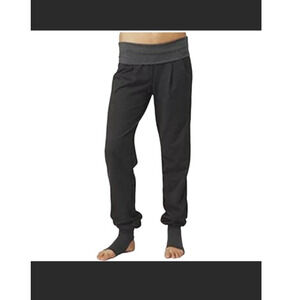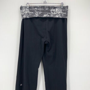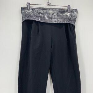 Like new condition. Older lulu style. No pilling and deep black. Waist band card pocket. Fold over waist, lets you wear it how you like. Front pleated Luon fabric, tapers down to an over long foot sleeve. Pull up sleeve to cuff the pants or wear them down over your heels.