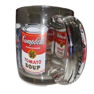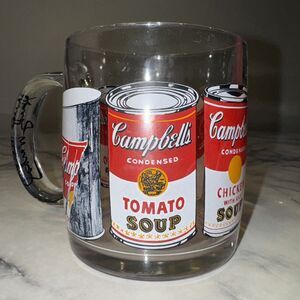 Vintage Luminarc Andy Warhol Campbell's Soup Can LARGE Glass Handled Mug Cup
