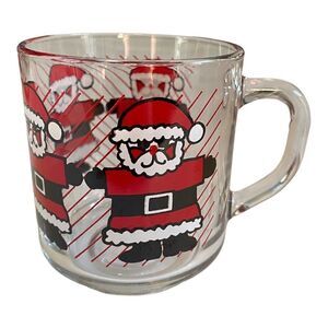 Vintage Luminarc Clear Glass Santa Claus Christmas Mug Holiday Coffee Tea Cup