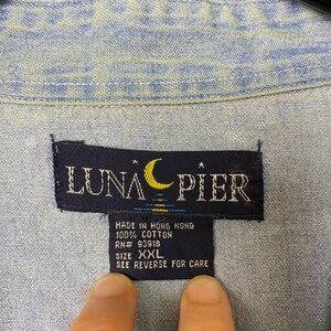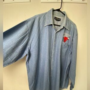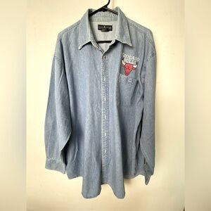 Vintage Luna Pier Light Blue Denim Shirt XXL with Chicago Bulls detail