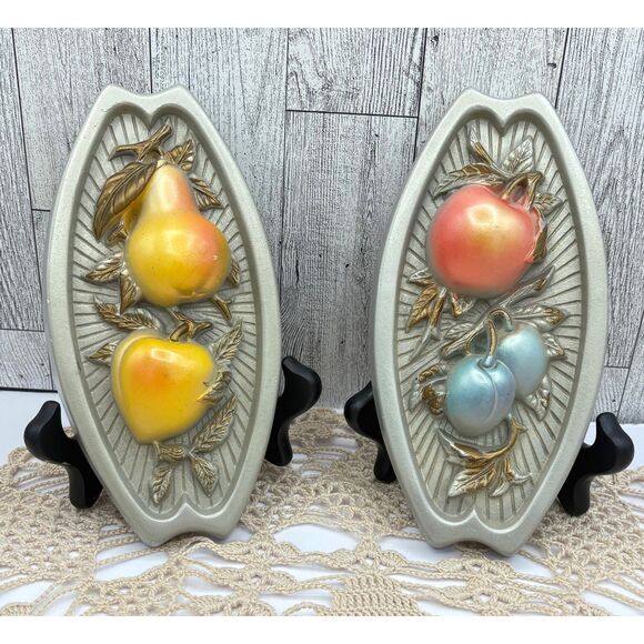 Vintage Lusterware Chalkware Fruit Plaques Wall Decor Kitchen