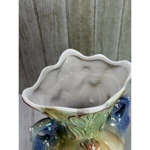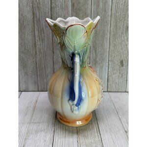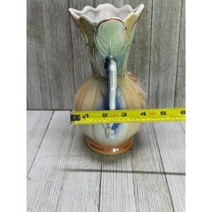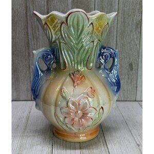 Vintage Lusterware Vase Art Pottery Floral Double Handle 9" - Made in Brazil
