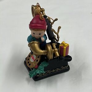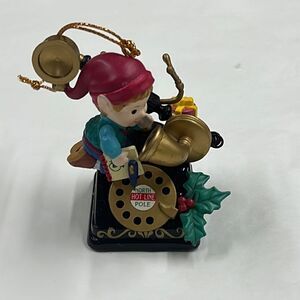 Vintage Lustre Frame 1994 North Pole Hotline Elf On Phone Ornament 2.25” Excellent cond