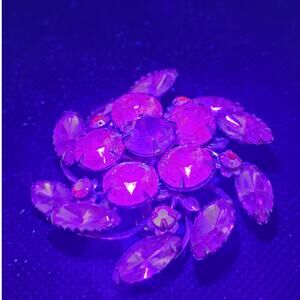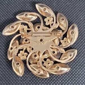 Flash some vintage luxe with this 50s floral swirl brooch, glowing in pink and red rhinestones set against gold-tone metal. Retro statement style that elevates coats, scarves, and collars with glamour. The swirl petal motif brings drama and elegance, offering vintage flair in every detail. For lovers of bold accessories, floral motifs, and mid-century costume jewelry—this brooch is built to shine in your collection.