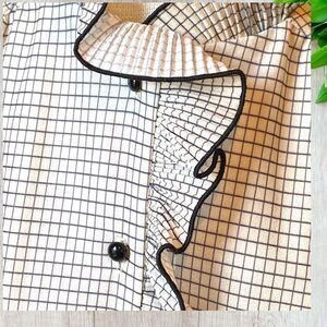 Vintage Lynn Davis Windowpane Ruffle Front Shirt 10