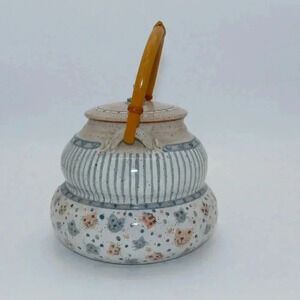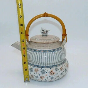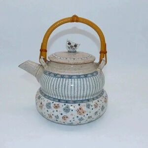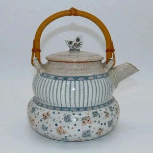 Vintage Lynne Norwood Lofton Art Pottery Pink Blue Kitten Cat Teapot Signed