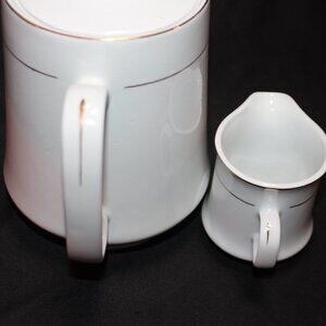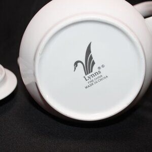 Vintage Lynns Fine China Teapot and Creamer White with Gold Trim