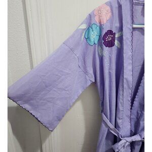Vintage Lyre Bird Women's Lightweight Short Robe Floral Applique Purple Size M
