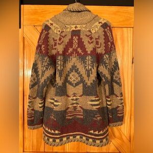 Vintage M 90s WOOLRICH 100% Wool HAND KNIT Aztec Native American Shawl Cardigan. Very neat piece!