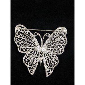 Vintage M Jent Butterfly Pin Silver Tone Open Metal Work Brooch