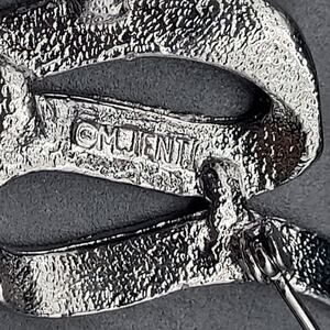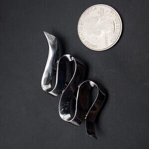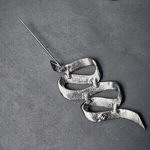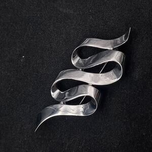 Vintage M Jent Signed Brooch Ribbon Ripple Silver Tone Costume Jewelry