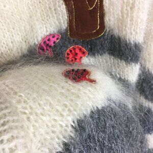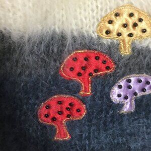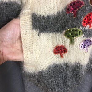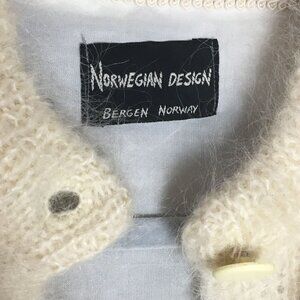 Vintage M L Mohair Wool LINED Handmade Shaggy Cardigan Sweater Mushrooms NORWAY