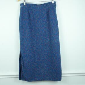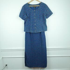 Vintage M L Top Skirt Set Linen Blend 90s Cottagecore Midi Floral Prairie Modest