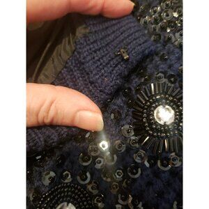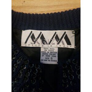 Vintage M M Kriza Beaded Jacket Cardigan Sweater Sequins Navy 100% Wool Size S