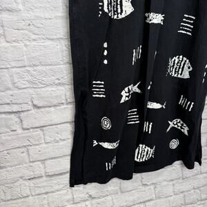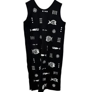 Vintage M. Max Sleeveless Black Dress Painted Fish Tribal Plus Size 1X long Art