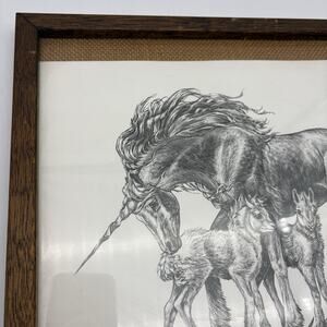 Vintage M. Pena Print Unicorn and Babies Foals Sparkles Circa 1981 Black & White. Condition is Used. Shipped with USPS Ground Advantage.