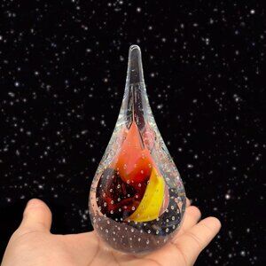 Vintage M Pyrcak Polish Art Studio Tear Drop Flame Glass Paperweight Signed MP.
