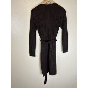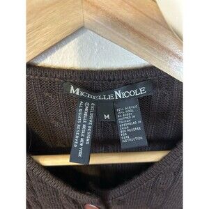 Vintage M Sweater Cardigan Wool Cable Knit Fisherman Academia Brown Duster