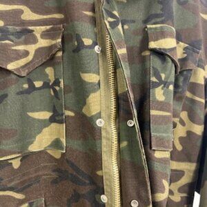 vintage military jacket, tactical jacket, woodland camouflage, M-65 field jacket, surplus style, utility jacket, gorpcore jacket, grunge outerwear, Y2K streetwear, mens camo coat, retro army jacket, rugged workwear, combat jacket, oversized camo jacket