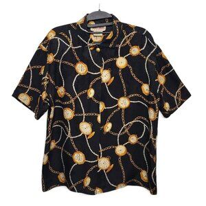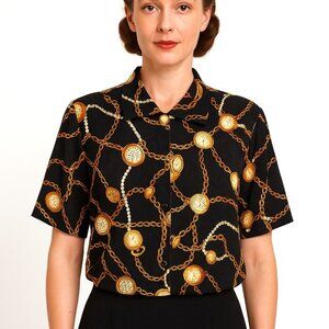 Vintage MAGGY LONDON 100% Silk Blouse Pocket Watches Gold Chain & Pearls