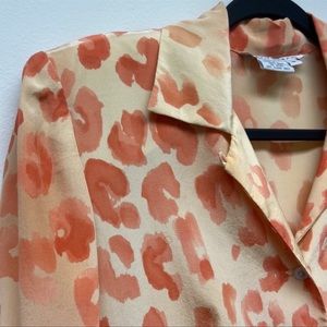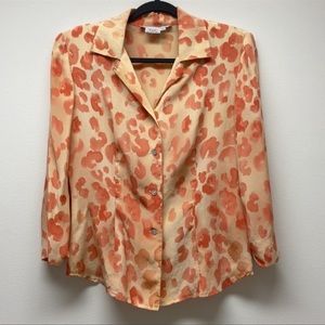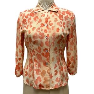 Vintage MAGGY LONDON | Silk Button Down Animal Print Blouse Orange Size…