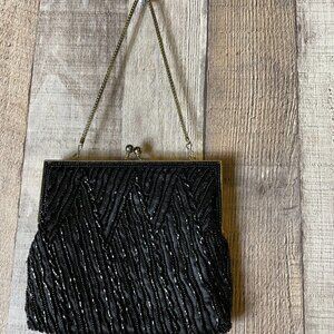 Vintage MAGID Black Beaded Evening Bag