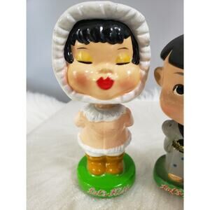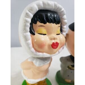 Vintage MAGNETIC LIPS Bobblehead Nodders Eskimo Asian Kissing Kitsch Paper Mache