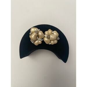 Vintage MARCELLA Clip On Earrings Pearl Rhinestones Beads