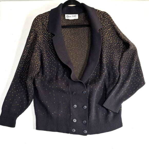 Vintage MARIO FORTE Cardigan Wool Blend Double Breasted Black Sweater