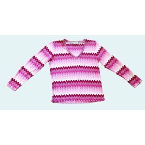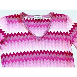 Vintage MARISA CHRISTINA Zig Zag Pink White Made In Italy V Neck Sz SM