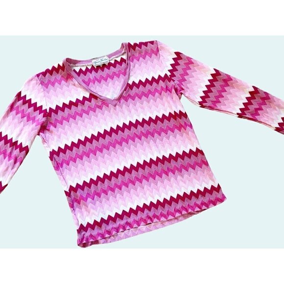 Vintage MARISA CHRISTINA Zig Zag Pink White Made In Italy V Neck Sz SM