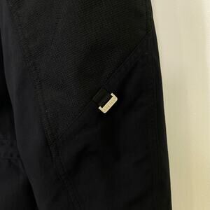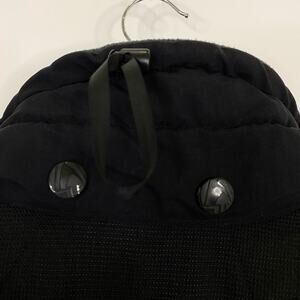 • Black nylon shell, light gray lining, rugged outdoor build