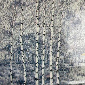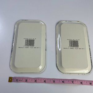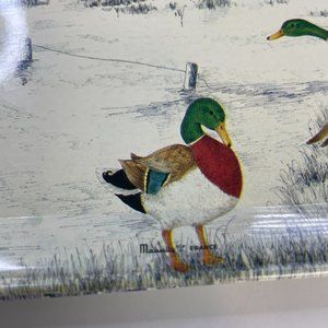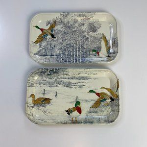 Vintage MASSILY Stamped Metal Outdoor Duck Pond Wood Scene Snack Trays Set of 2