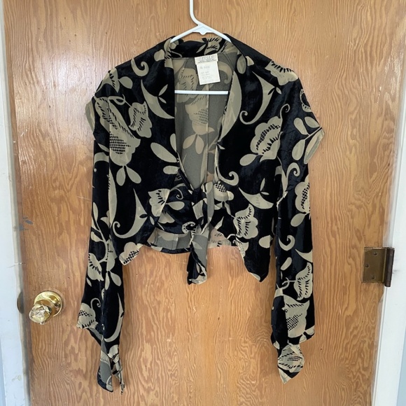 Vintage MATSUDA Japenese burnout velvet tie-front blouse, jacket - 1980s