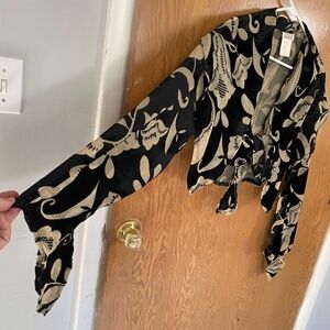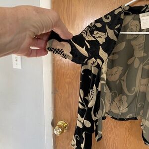 Rare Matsuda wrap jacket or blouse in black and cream. Fits side 8 or 10. Loose and flowy..Wear tied or open.