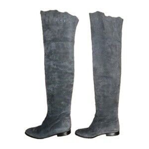 Vintage MAUD FRIZON Gray Suede Thigh High Boots Size 36 Made in Italy