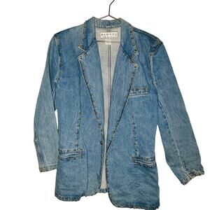 Vintage MAXILOU Light Wash Gold Studded Front Pockets Denim Jacket Size Medium