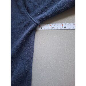 Festive vintage McSportswear navy long sleeve top featuring embroidered Santa and reindeer motif in diamond frames. Soft cotton-poly blend offers comfort with a classic holiday aesthetic. Perfect for casual holiday gatherings, cozy winter days, or Christmas photo ops.