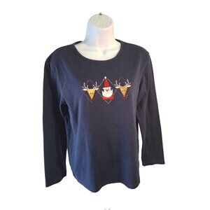 Vintage MC Sportswear Christmas Reindeer Santa TShirt M Navy Embroidered Festive