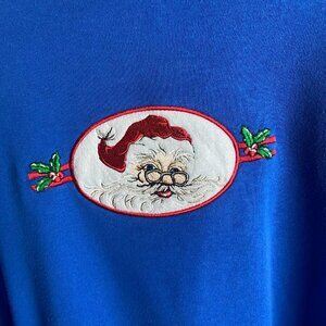 Vintage M&C Sportswear L Crew Neck Sweatshirt Embroidered Santa Blue Christmas