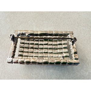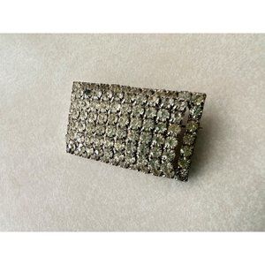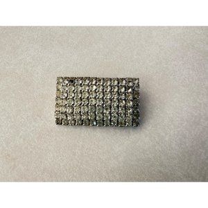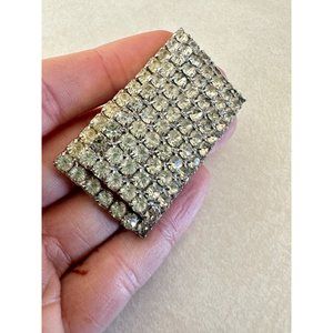 Vintage MCM 1950s silver tone crystals rhinestones rectangular brooch pin