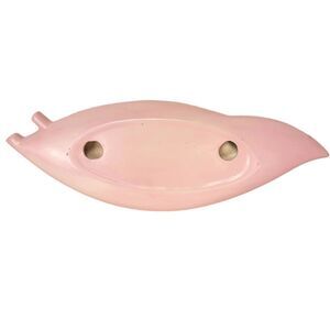 Vintage MCM 50s Atomic Pink Floral Ceramic Large Centerpiece Ashtray Mid-Century