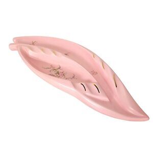 Beautiful vintage MCM 50s atomic pink floral ceramic porcelain large centerpiece ashtray trinket dish, jewelry tray,