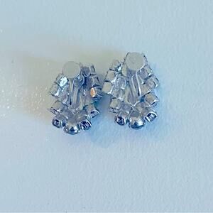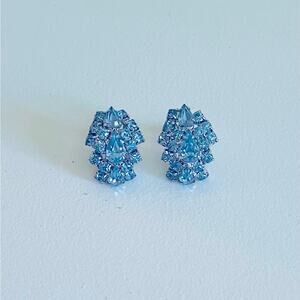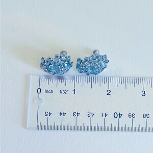 Vintage MCM 50s Blue Rhinestone Cluster Screw-Back Earrings Special Occasion