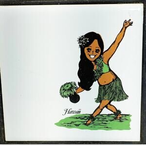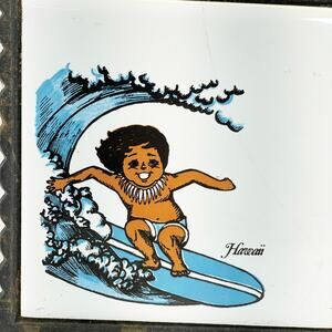 Vintage MCM 70s Hawaii Cast Iron Tile Ceramic Trivets Wall Hanger Surfer Hula Polynesian