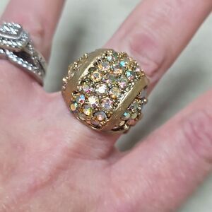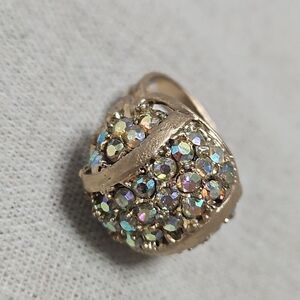 Vintage MCM AB Rhinestone Sputnik 60s Dome Cocktail Ring adjustable Gold 8-10