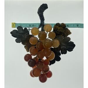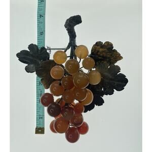 Vintage MCM Amber, Orange, Lucite, Acrylic Grape Cluster. Metal Leaves.