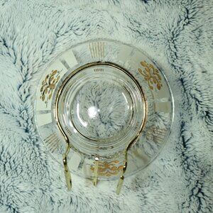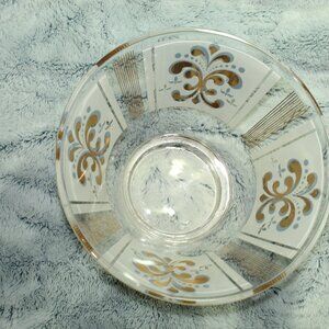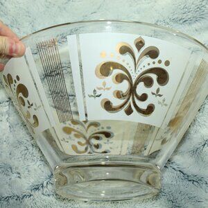 Vintage MCM Anchor Hocking 1960's MCM Gold Fleur Hanging Chip and Dip Bowl Set